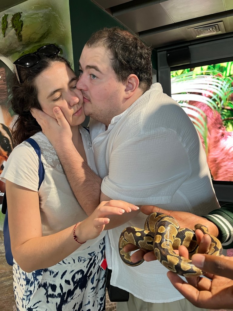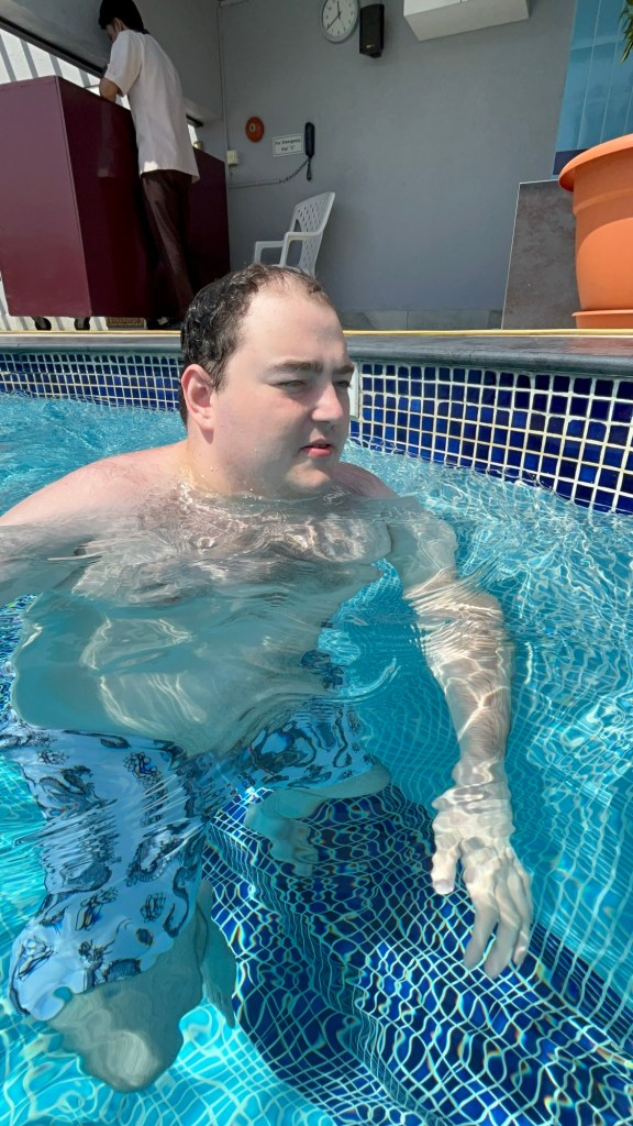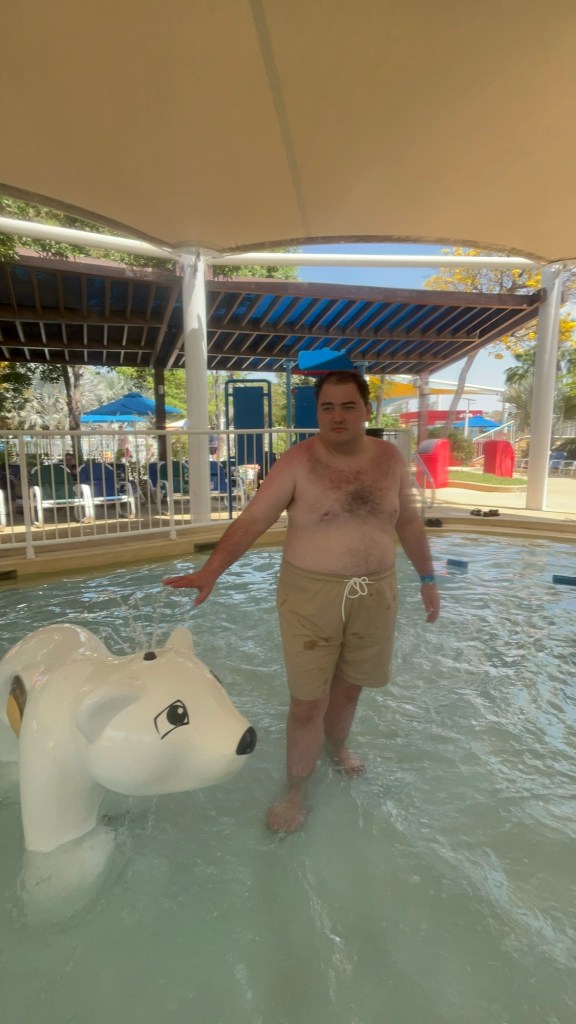 Po kúpaní s delfínmi sme sa presunuli do bazéna s tryskami. Bol obrovský a Branko si ho chcel celý preskúmať. Ako sme sa dostali ďalej od ľudí, začal špliechať vodu okolo seba. Plavčík, ktorý stál obďaleč, na nás pozrel a ja som mu povedala, že Branko je autista. Keďže tam nikto nebol, pridala som sa k špliechaniu aj ja… a na moje prekvapenie aj plavčík! Nakoniec sme sa všetci traja smiali a špliechali ako malé deti.