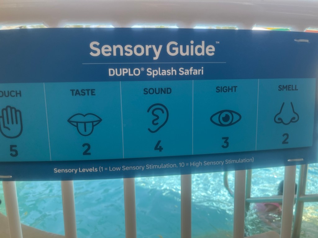 • V parku je tabuľa so zmyslovým označením atrakcií – rozdelené sú podľa toho, ako pôsobia na čuch (smell), zrak (sight), sluch (sound), chuť (taste) a hmat (touch). To môže pomôcť pri výbere atrakcií pre autistov alebo pre ľudí s citlivosťou na niektoré podnety.